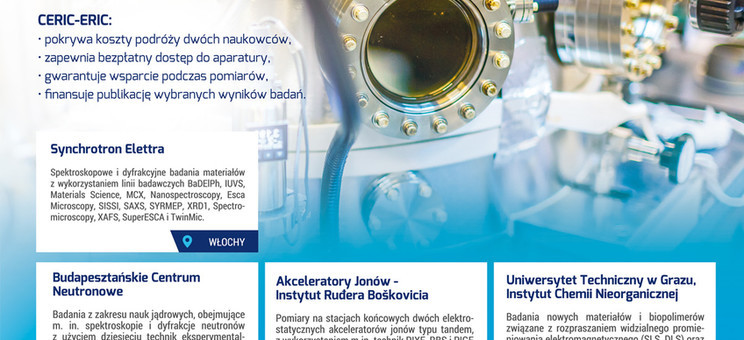 Konsorcjum Środkowoeuropejskiej Infrastruktury Badawczej CERIC-ERIC po raz kolejny zaprasza do bezpłatnego korzystania ze swojej infrastruktury badawczej. Oferta CERIC-ERIC skierowana jest do naukowców z takich dziedzin jak: biologia, medycyna, farmakologia, biotechnologia; chemia; fizyka; elektronika, nanotechnologia; geologia; ochrona środowiska i inżynieria materiałowa.