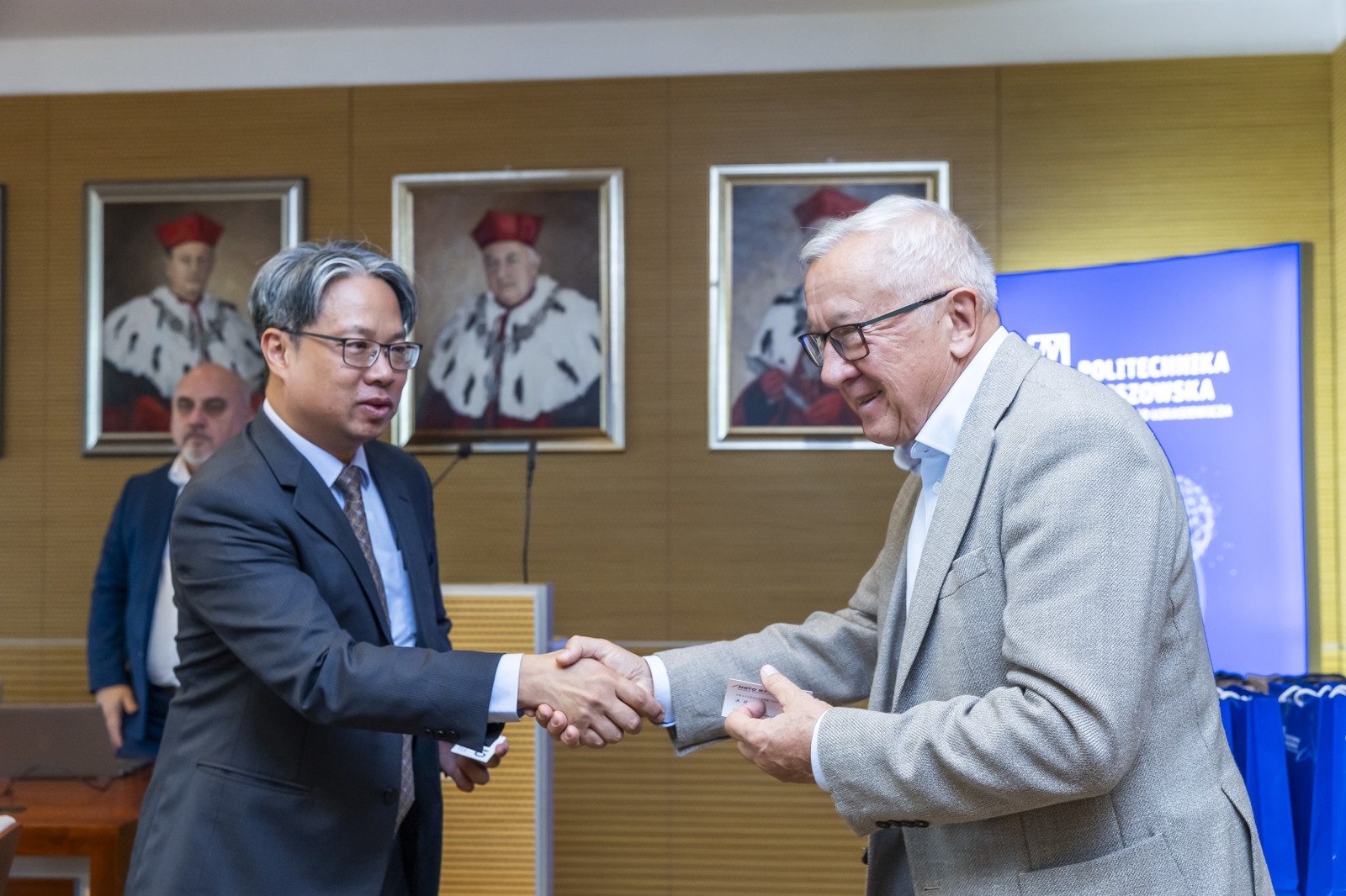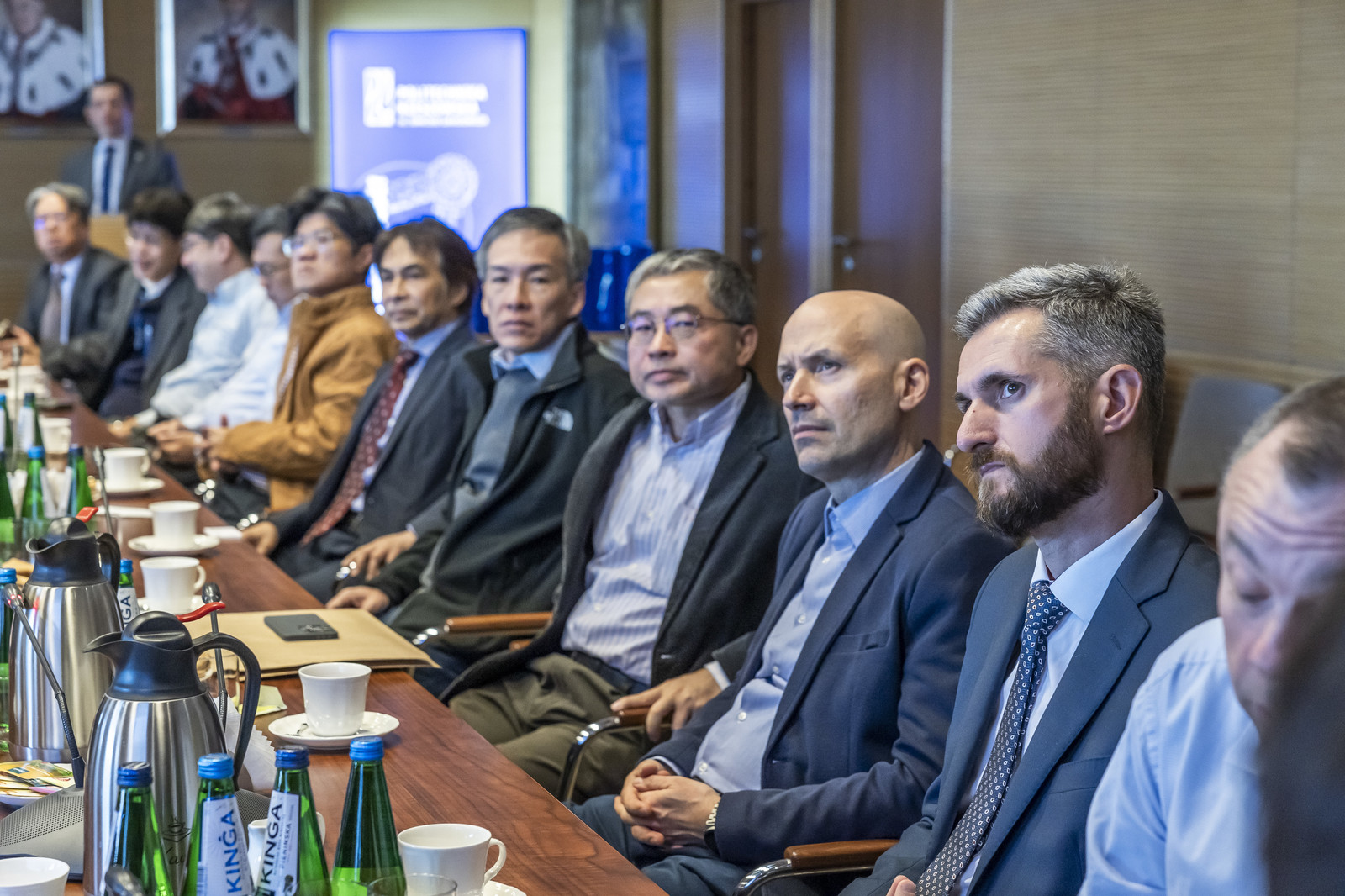 W Sali Senatu Politechniki Rzeszowskiej odbyło się spotkanie delegacji naukowo-przemysłowej z Tajwanu z przedstawicielami Politechniki Rzeszowskiej oraz firm lotniczych z Podkarpacia. Wydarzenie było okazją do wymiany doświadczeń i omówienia potencjalnych obszarów współpracy w dziedzinie zaawansowanych technologii lotniczych, systemów bezzałogowych oraz innowacyjnych rozwiązań dla przemysłu kosmicznego.
