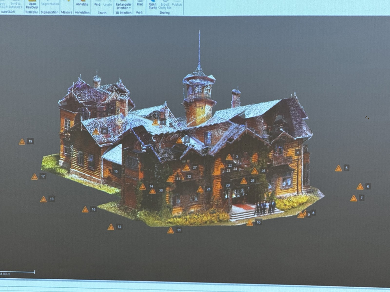 We wdrożeniu wzięli udział pracownicy PBGiTR w Rzeszowie oraz Politechniki Rzeszowskiej. Studentka kierunku geodezja i planowanie przestrzenne Magdalena Kuzdak w ramach praktyk i udziału we wdrożeniu wykonała pomiary terenowe oraz prace kameralne do swojej pracy inżynierskiej. Wdrożenie zostanie przeprowadzone na terenie Pałacu Myśliwskiego w Julinie. W ramach przeprowadzonej inwentaryzacji pozyskano m.in. precyzyjne georeferencyjne chmury punktów oraz zdjęcia lotnicze i naziemne. Na ich podstawie został opracowany realistyczny trójwymiarowy model obiektu możliwy do wykorzystania przez Muzeum-Zamek w Łańcucie, m.in. na potrzeby ochrony zabytków i promocji. W ramach prac powstały również profesjonalne rzuty poziome i pionowe budynków, przekroje oraz zestawienia powierzchni pomieszczeń i elewacji.