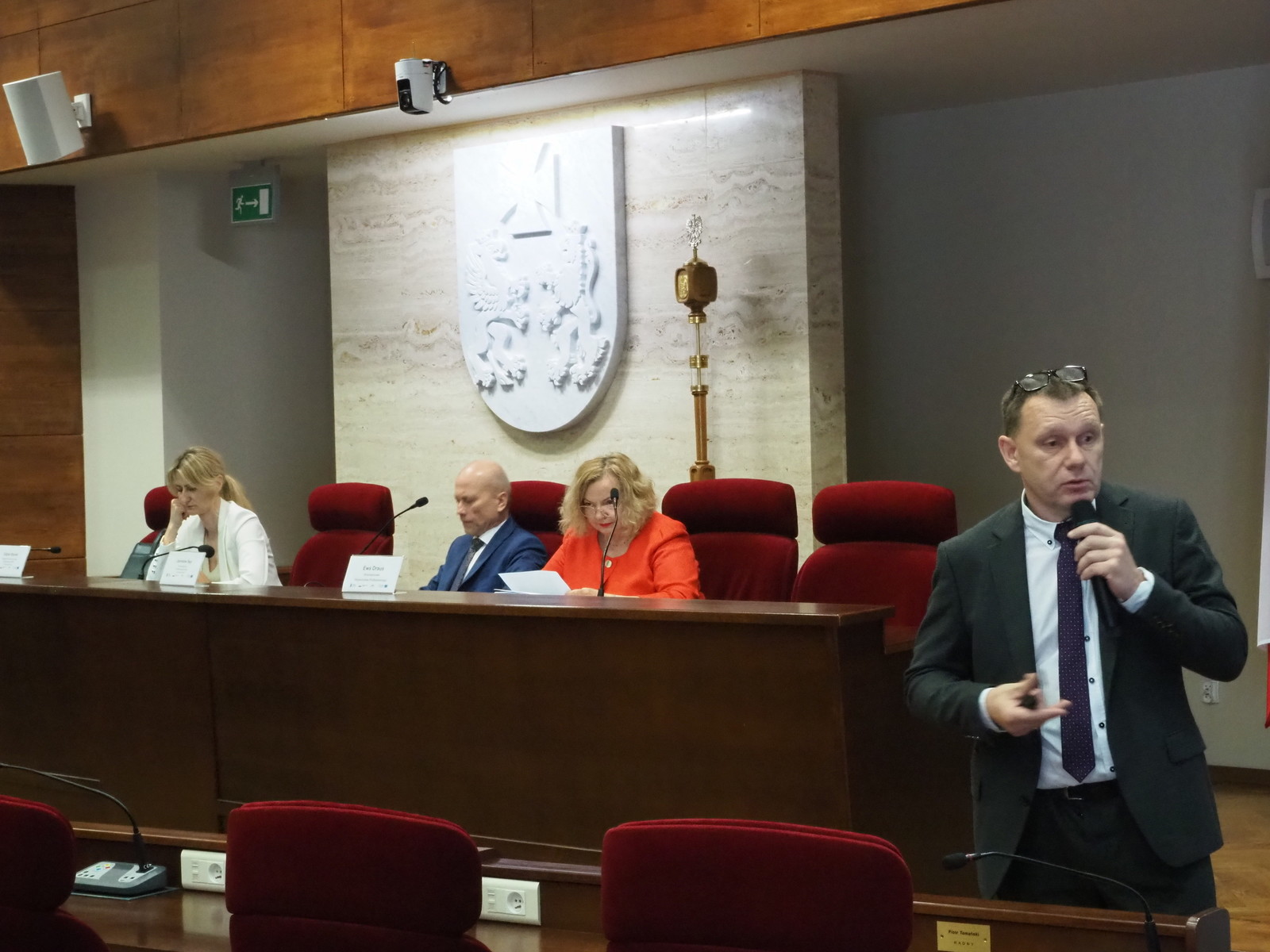Rozpoczęcie obrad przez przewodniczącego PRI prof. J. Sępa. Obok E. Stanek,