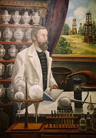 Ówczesne apteki jako jedyne, dysponowały laboratoriami chemicznymi – one też umożliwiały prowadzenie prac badawczych. Wiedziano już o istnieniu ropy naftowej w Galicji, nie cieszyła się ona jednak większym uznaniem. W połowie XIX w. wzrosło zainteresowanie tą materią w rejonie Drohobycza i Stanisławowa, gdzie występowała najobficiej. Piotr Mikolasch zakupił w 1852 r. kilka beczek ropy destylowanej, a zatrudnieni tamże Łukasiewicz i Zeh podjęli się jej oczyszczenia. Po wielu trudach otrzymali naftę – substancję przydatną do oświetlenia, a wynalazek zgłosili w Austriackim Urzędzie Patentowym.